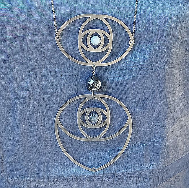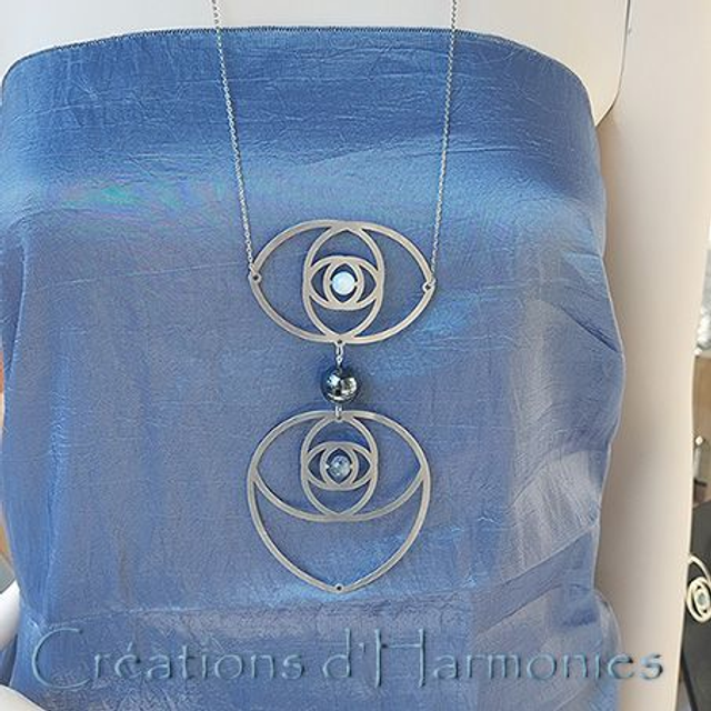 Collier Harmonise énergie féminine avec pierre naturelle aigue-marine, hématite et labradorite. Ce collier inspiré crée une bulle d'harmonie avec les spécificité des pierres qu'il contient. La synergie des pierres naturelles apporte leurs vertus de protection, d'énergie et de douceur féminine. Cette création est protégée par copyright et modèles enregistrés – tous droits réservés ©Véronique Staffe