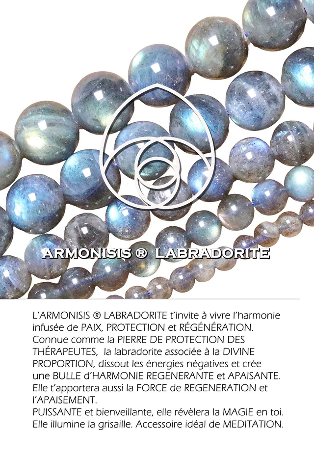 La forme de la divine proportion alliée à la labradorite, pierre de protection des thérapeutes vous apporte harmonie, protection, force de régénération.